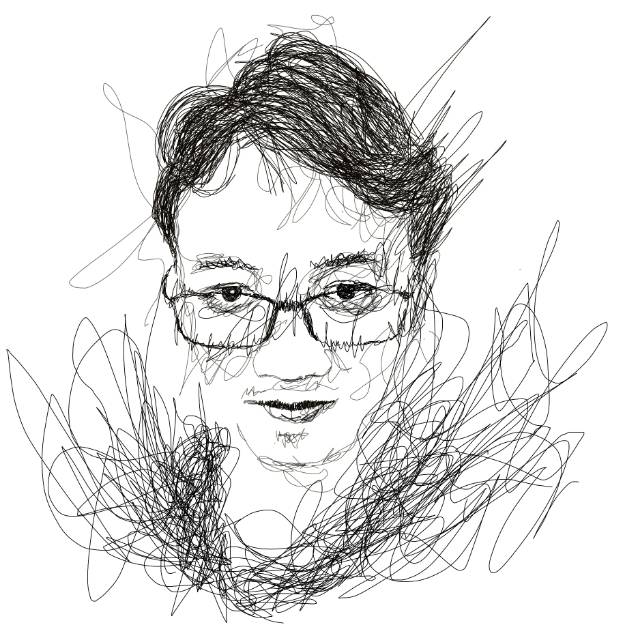 Sketsa gambar abstrak hitam putih wajah.